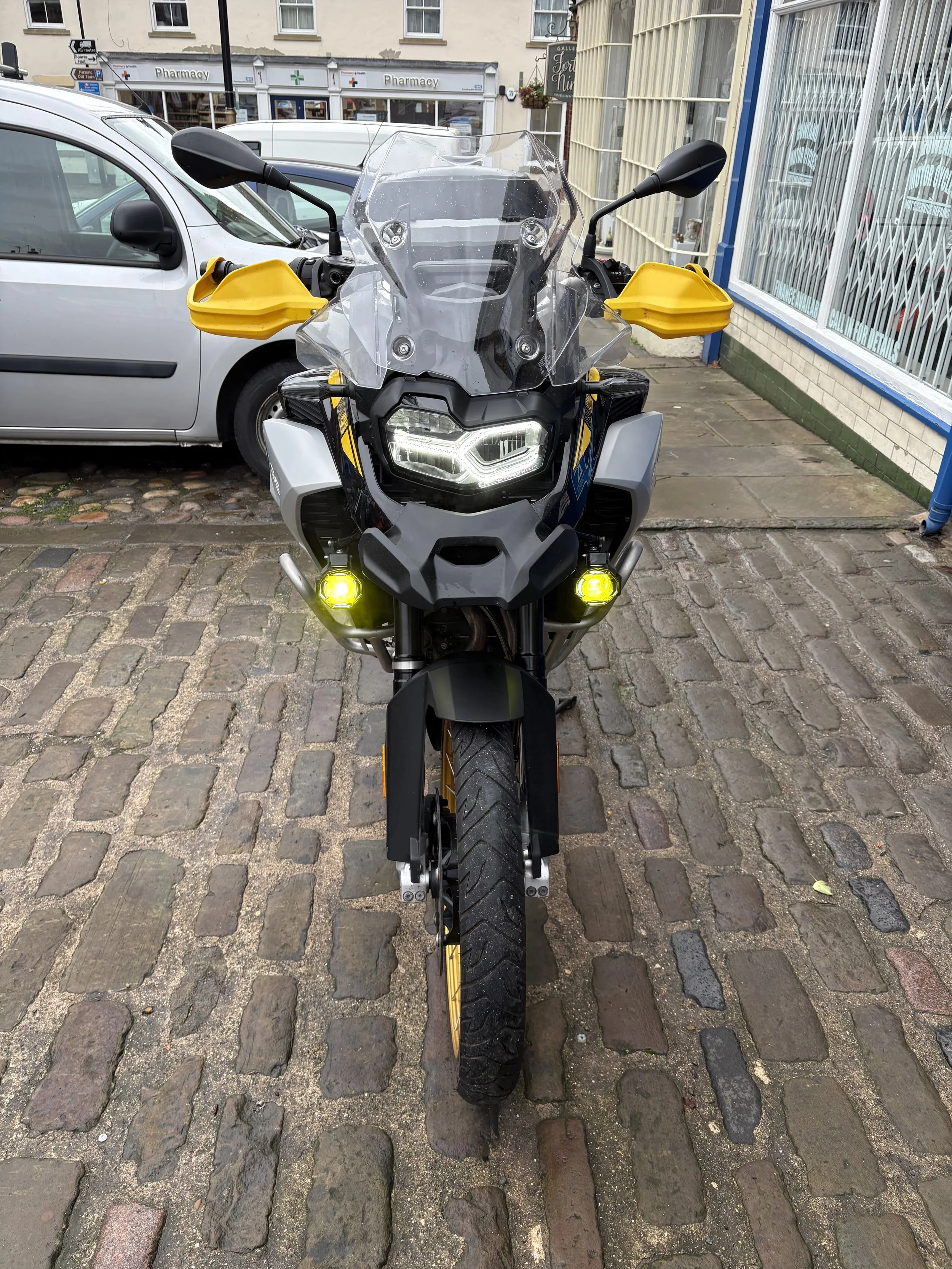 Comes with 2 keys, Topbox, Crash Bars, Spot lights and Yellow Hand Guards.